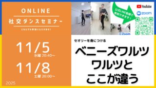 オンラインセミナー 第533回534回 スイングの総復習&演習/セオリーの習得が上達の最短ルート ベニーズワルツはワルツとここが違う。/セオリーの習得が上達の最短ルート 開催日 11月5日水曜 20:40〜21:2... 2025.11.05 オンラインセミナー