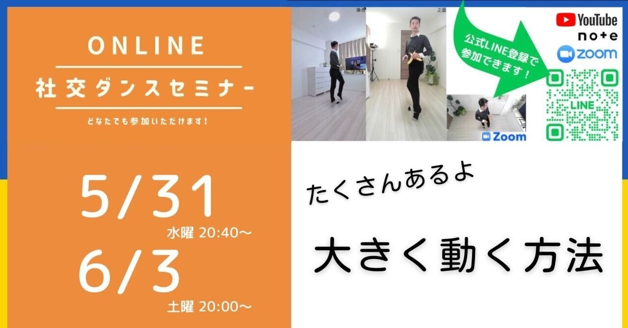 このノートでは、大きく動く効果とリスクを説明した上で、大きく動くためのテクニックを紹介します。それぞれのテクニックの紹介は動作を交えて見てもらいたいので、オンライン社交ダンスセミナーのZoomもしくは録画のYoutubeからご覧ください。い...