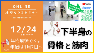 オンラインセミナー 第544回立ちに関係する下半身の骨格と筋肉 骨格と筋肉を理解しよう/オンライン社交ダンスセミナー 開催日 12月24日水曜 20:40〜21:20 ... 2025.12.24 オンラインセミナー